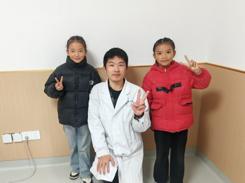 晚饭过后,我裹紧外套穿行在返回宿舍的小巷,忽然听到熟悉的声音:“医生叔叔!”转头,我就看见索朗卓玛和勒娜挥着小手奔来。这是多么奇妙的缘分,姐妹俩正“遵循医嘱”在家门口玩耍,小脸蛋冻得通红。
