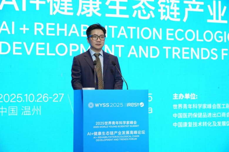 作为分论坛,“AI+健康生态链产业发展高峰论坛”于10月26日举行,论坛由世界青年科学家峰会医工融合专委会、中国康复技术转化及发展促进会非医疗健康干预专业委员会、中国医药保健品进出口商会按摩保健器具分会共同主办,温州医科大学、温州世界青年科学家成长基金会、豪中豪健康科技有限公司联合承办,聚焦AI与健康产业的深度融合,旨在推动康复器械行业向智能化、国际化转型升级,吸引了来自全球的顶尖学者、行业领袖与企业代表共聚一堂,共话AI赋能大健康的未来路径。