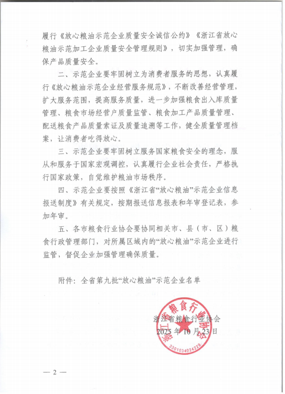 日前,浙江省粮食行业协会正式认定温州市粮食产业集团所属温州市粮食供应有限公司为“放心粮油示范企业”。