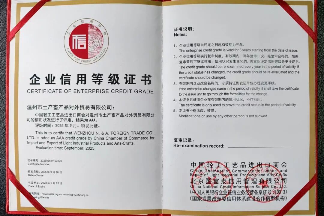 下一步,土产公司将以此为新起点,持续升级“信用+合规+数字化”管理体系,深耕 RCEP 及“一带一路”新兴市场,以信誉口碑赋能国际竞争,充分发挥“AAA 级信用企业”品牌优势,主动对接温州鞋服、箱包、眼镜等特色轻工产业集群,为本土中小企业提供更优质的外贸综合服务,为温州市提速打造“全省第三极”贡献力量。