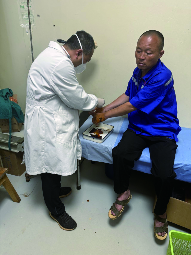 “王队长,打扰你们了!快帮我们看看他!”同胞焦急地向王鹏飞求助。王鹏飞立刻将目光聚焦在受伤同胞身上,这名同胞双手有明显贯通伤,手指骨外露,皮肤泛白,结合“被电击了”的描述,王鹏飞心头一紧:电击伤的危险远不止表面创口,电流通路可能对心脏、神经、肌肉造成隐匿性损伤,稍有延误便可能危及生命。