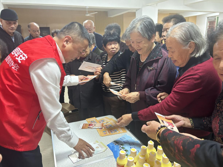 在苍南,慰问队伍前往苍南德福养老院,开展了一场以“重阳敬老 平安情暖夕阳”为主题的金融宣传暨慰问活动。为老人们送上了精心准备的慰问品,用当地方言向老人们普及金融安全知识,提醒他们注意个人信息保护,防范网络和电话诈骗。同时,还安排了一场手绘草帽活动,为老人们带来欢乐,让老人们感受到社会的温暖和关怀。