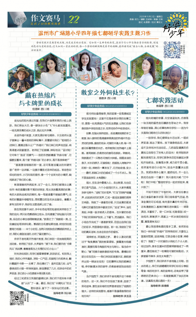 若问何处值得推荐,我的答案一定是鹿城区学生实践营地!这里不仅是奇思妙想的创意工坊,更是一处充满烟火气的生活课堂,让我们在亲身实践中体验创造之乐,在劳动协作中收获成长。
