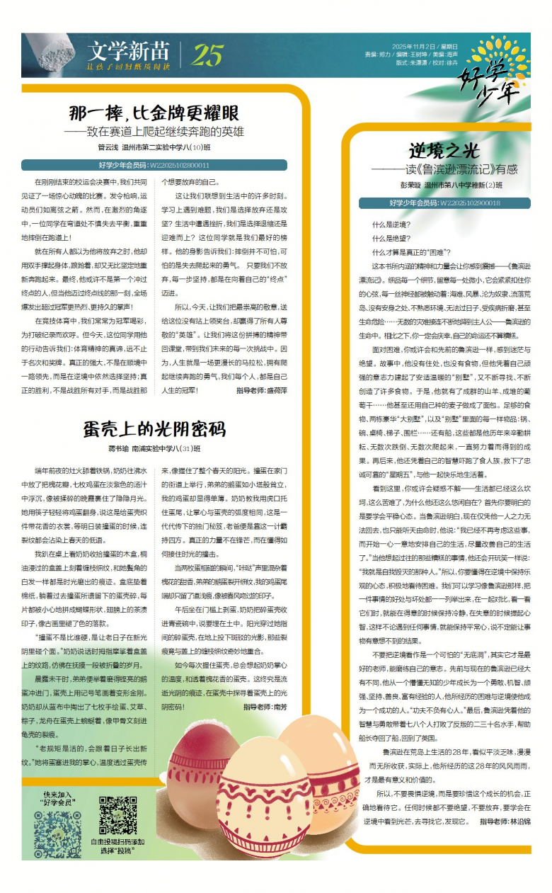 晨露未干时,弟弟便举着磨得铿亮的鹅蛋冲进门,蛋壳上用记号笔画着变形金刚。奶奶却从蓝布中掏出了七枚手绘蛋、艾草、粽子,龙舟在蛋壳上蜿蜒着,像甲骨文刻进龟壳的裂痕。