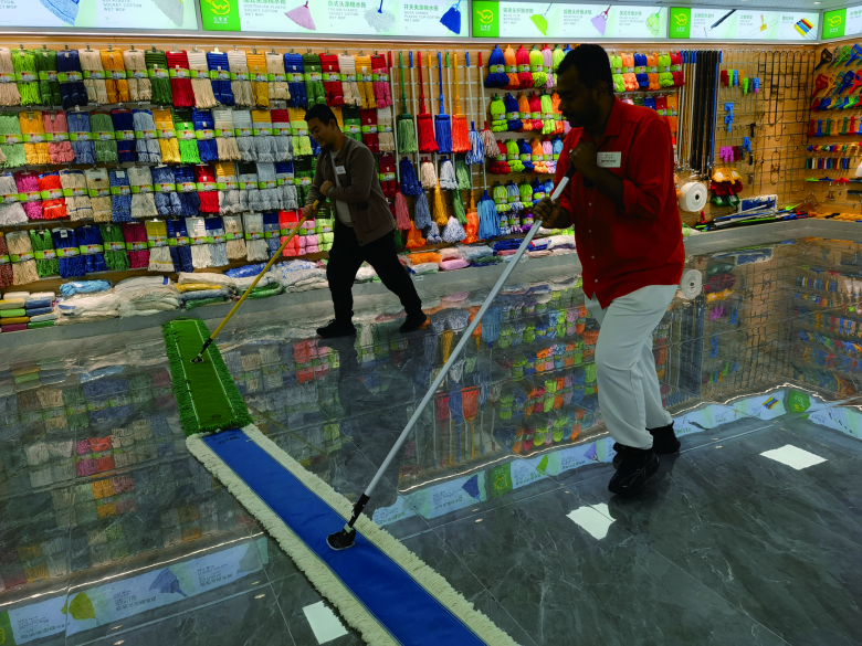“一些特殊场所,对拖把的要求不一样。就拿医院来说,需要区分拖把使用的区域,对拖把的材质也有各种不同要求。”陶开宋说,公司生产了多种不同材质的拖把,并把拖把用各种颜色加以区分,以满足特殊场所的需求。