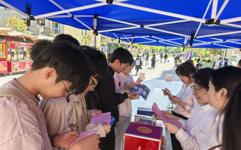为增强宣传趣味性,现场特设“反诈小知识答题”,设置单选题、多选题及判断题共200余题,内容涵盖“刷单返利诈骗识别”“校园贷陷阱规避”“国家反诈中心APP功能”等实用知识。答题正确的学生可获赠小礼品,吸引500余名学生踊跃参与,现场互动气氛热烈。同学们在轻松的答题过程中加深了对”凡是要求先转账的都是诈骗“出租账户可能涉嫌帮信罪”等关键知识点的记忆,有效提升了自我防范能力。