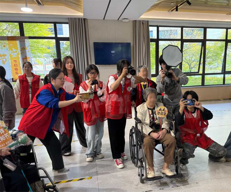 绿幕抠像、AI图像、创意视频……近日,一场名为“时光照相馆”的科技助老活动在现代金竹嘉园温情上演。一群来自浙江东方职院智慧康养学院青年学生志愿者,运用时尚前沿的AI摄影潮流,带领养老机构里的50多位长者体验科技新生活,为他们送上了一份独特的温暖。
