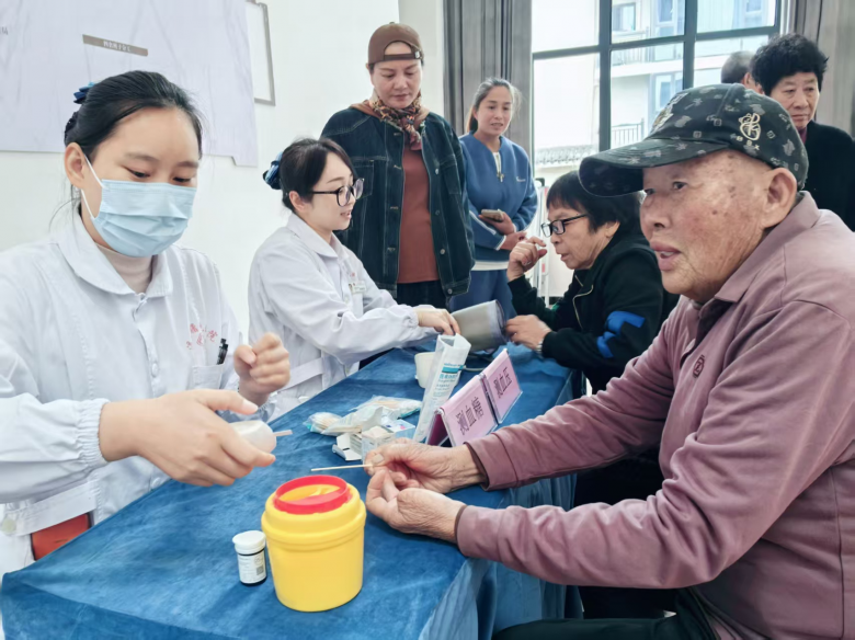 与美食的香气一同到来的还有专业的医疗服务。温州曙光医院医务科主任刘江带领该院骨科副主任杨艳行、骨科护士长邓和平、护士颜茜茜等医务人员,在村里搭建起了临时的“健康驿站”。