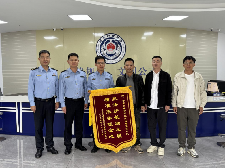 贴心服务助发展,精准指导暖企心。日前,苍南县综合行政执法局获赠锦旗,小小锦旗载着企业满满感恩之情,也对县综合行政执法局今年创新推行的“助企加油站”给予一次充分肯定。