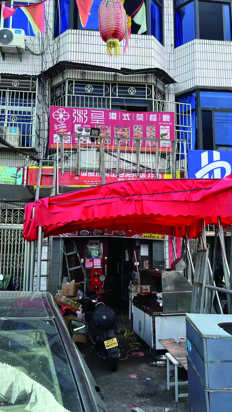 11月10日,温都记者实地走访了该店,门口悬挂着“粥皇港式茶餐厅”“炭呷烧烤”“饭圈顶流土豆泥拌饭炸鸡”等招牌,门前堆着烧烤架、啤酒瓶及废旧桌椅等物品。店门仅有一扇微敞,室内光线昏暗,不时有阵阵恶臭传出。