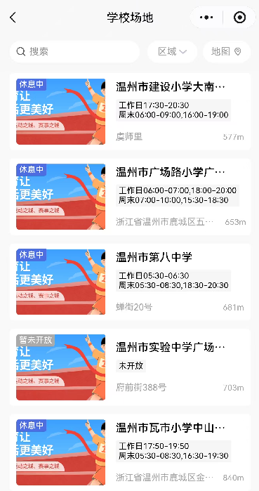 为此,记者联系了温州市体育局群众体育处。“我们体育部门负责‘百姓运动码’小程序的开发,以及学校体育设施的提供,至于哪所学校具体开放时间,不是我们负责的。”该处相关负责人告诉记者,“百姓运动码”小程序中,每所对外开放的学校或者校区,都标有开放时间,市民需要进校锻炼的话,可以根据标注的开放时间进相应运动场所。“每所对外开放的学校或者校区,在小程序上都有自己的账号,对外开放时间并不是由体育部门或者教育部门统一规定的,而是每所学校或者校区根据自身实际情况自行设定的。”