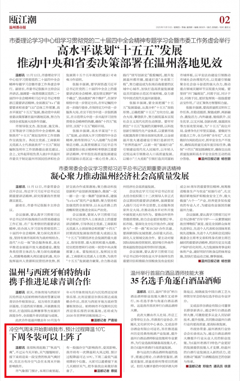 市气象部门预计,本周日夜里起,有一股强冷空气影响我市,受其影响,我市将有一次降温和大风过程,预计过程降温可达10℃,下周二最低气温将降到个位数。大家可以趁着接下来几天晴好天气,把冬装找出来做好准备了。