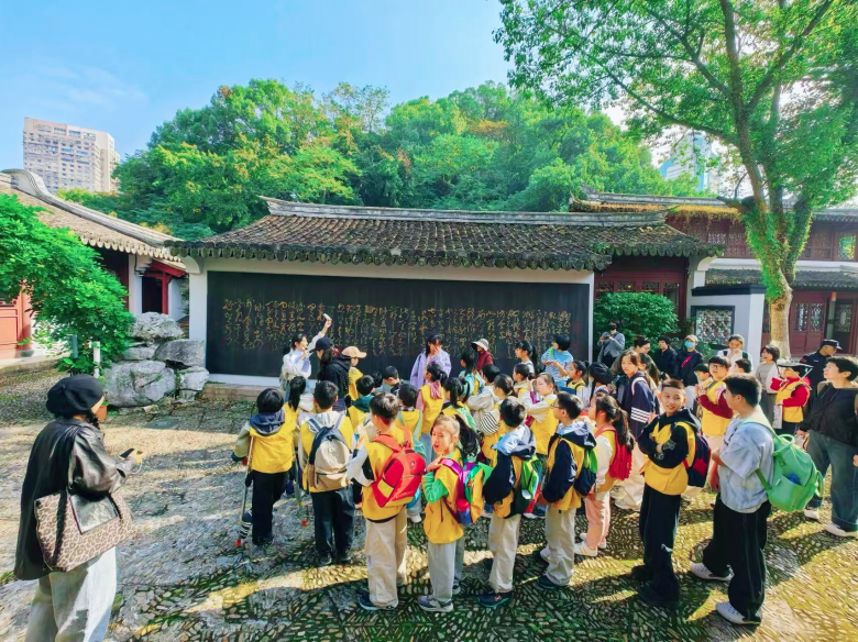 研学之路,亦是寻根之路。首站“池上楼”,孩子们追随着谢灵运的足迹,在古雅景致中品味“池塘生春草”的诗意,感受山水诗派的文脉底蕴;移步“东瓯王庙”,大家在殿宇之间探寻温州始祖的开拓故事,触摸家乡起源的厚重根脉;最后走进“夏鼐故居”,在先生的生平事迹与学术成果中,汲取严谨求实的治学风骨,体会先贤的精神力量。一路行走,一路收获,温州的灿烂底蕴在脚步丈量中愈发清晰。