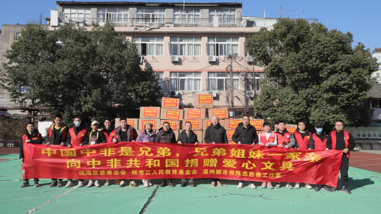 1月12日,由温州市瓯海区慈善总会、瓯海区人民教育基金会、温州都市报陈忠慈善工作室共同发起,向中非共和国捐赠的100多万元文具抵达天津港,从天津港运往中非共和国。这批文具共18箱、3000多公斤,其中铅笔、水笔、水彩等22万多支,各种橡皮擦5080盒,由温州本地知名企业生产;瓯海区慈善总会还捐赠了650双单鞋,赠送给中非共和国的妇女、儿童。