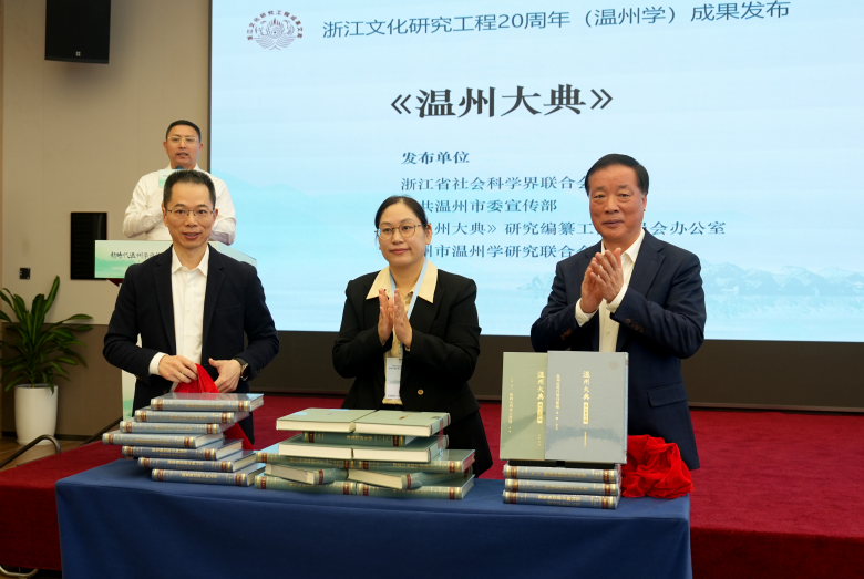 开幕式后迎来备受瞩目的研究成果发布环节,集中展示了《温州大典》《永嘉学派丛书续编》《温州学研究》集刊第一辑等三项具有里程碑意义的学术成果。