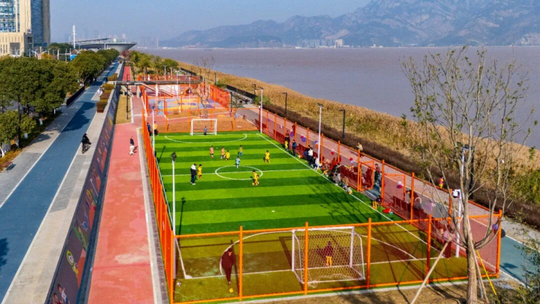 项目规划建设中,始终以“儿童需求”为核心导向,精准匹配不同年龄段儿童的成长特点与活动需求。公园内不仅配备了篮球场、足球场、滑板场等多样化体育设施,更创新设置科普体育教育墙与瓯江文化科普墙,通过互动式体验、场景化呈现的方式,让儿童在运动娱乐的同时,深化对体育知识、本土文化的认知,实现“运动+教育”的有机融合。