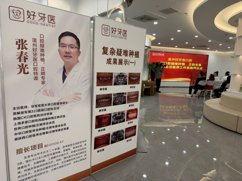 11月24日上午,“上海口腔疑难种植、正畸名医张春光主任工作室”在温州好牙医口腔正式揭牌。此次揭牌,标志着原解放军第323医院口腔科主任、三甲医院资深专家张春光正式加盟温州好牙医口腔,将为温州地区患者带来更高水平的诊疗服务。