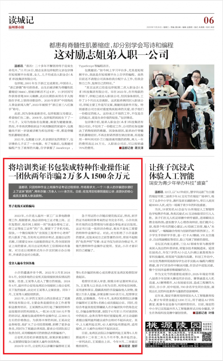 ▲《温州都市报》2025年11月26日06版
