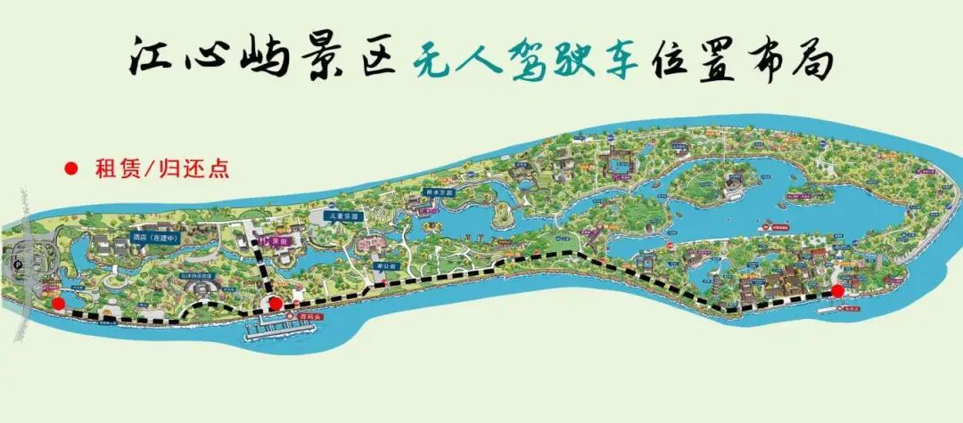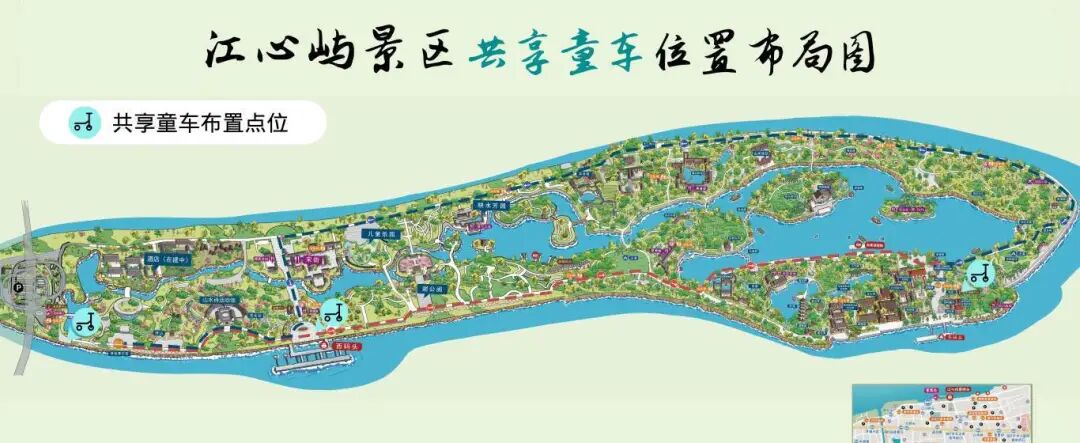 租赁/归还点位:景区西入口、西码头肯德基门口、东园海眼广场、南码头售票大厅。