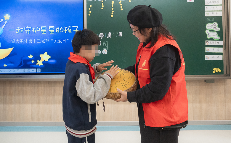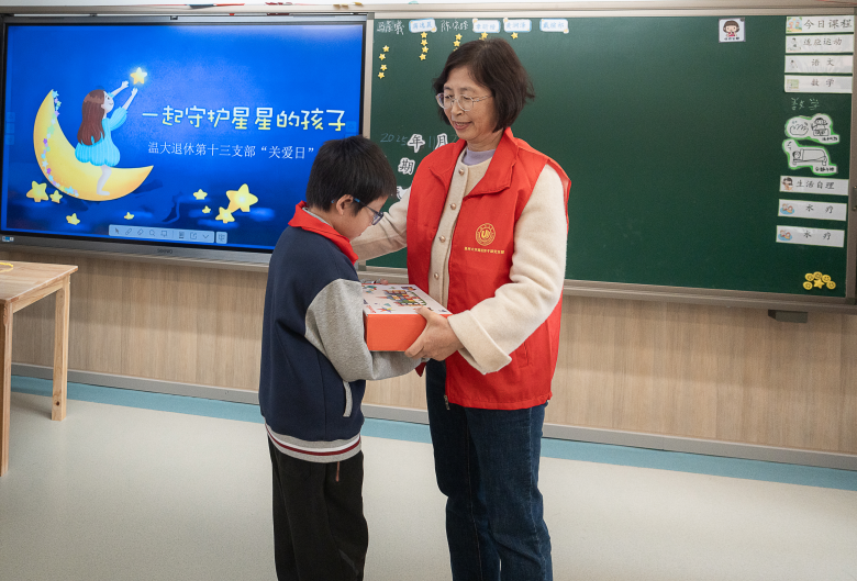 据悉,温州大学离退休第十三党支部成员在思政教育、学科教学以及课题研究等领域有着丰富的经验。“这是一项值得持续做下去的暖心事业。”温州大学离退休第十三党支部书记陈军看着现场融洽的景象,深有感触地说。他表示,关爱下一代是社会发展的基石,需要社会各界共同努力。“虽然我们已经退休,但仍要保持老当益壮的精神状态,继续发挥余热,用自身优势回馈社会。温州大学拥有丰富的教育资源和人才优势,后续我们将联动更多党支部参与进来,让点滴爱心汇聚成河,持续助力特殊儿童平等参与社会生活,共享社会发展成果。”