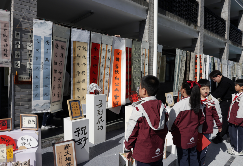 作为温州教育界的老牌名校,广场路小学历经百卅岁月沉淀,文脉绵延不绝。从建校之初的启蒙育人到如今的特色发展,学校始终以笔墨润心、以文化铸魂,不仅培育了一代代栋梁之才,更孕育了深厚的书画文化传统,诸多书画名家从这里走出,文脉基因早已融入校园肌理,成为学校鲜明的文化标识。广场路小学校长潘旸回顾学校自1896年创办于九柏园头永嘉县学堂以来的百卅历程,“书画育人”不仅是广小的教育传统,更是一种精神气度。近年来,学校通过建设林斤澜文学馆、神韵贝螺馆、谷超豪数学馆等特色空间,让美育回归教育本真,让文化成为孩子成长的根系。