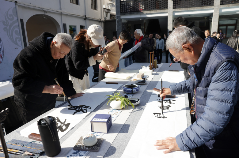 活动当天上午,校园内墨香四溢、暖意融融。戴宏海、黄德源、汪廷汉等知名书画名家校友重返母校,与 130 位学生代表一同挥毫泼墨,用一幅幅苍劲有力的书法、意境悠远的画作,书写对母校的美好祝愿,让百年文脉在笔墨流转中代代相传。