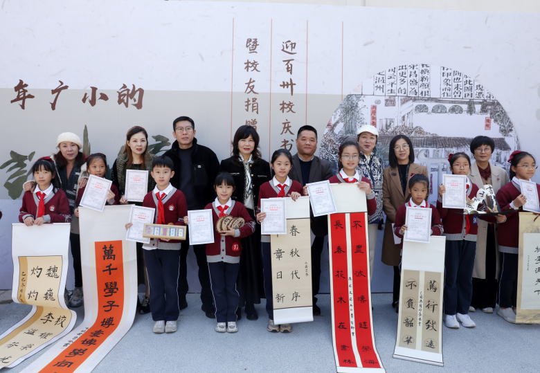 温都讯 11月29日,温州市广场路小学以“翰墨百卅载,同心绘华章”为主题,举办迎百卅校庆书画笔会暨校友捐赠仪式。师生校友齐聚这座承载着百年文脉的学府,以笔墨传情、以爱心聚力,正式拉开学校129周年校庆日活动及130周年校庆倒计时一周年的序幕。