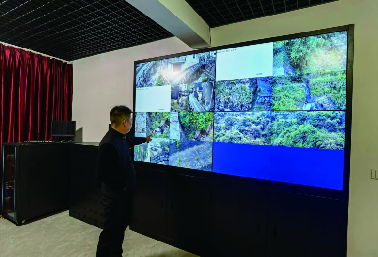 大屏幕上,乐清市龙西乡上山村灾害易发点的实时画面清晰可见