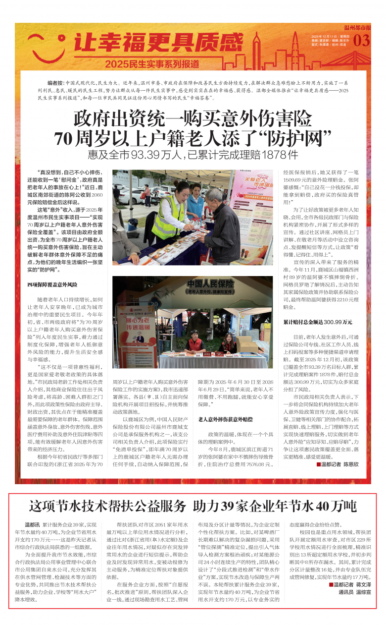 温都讯 累计服务企业39家,实现年节水量约40万吨,为企业节省用水开支约170万元……这是12月10日记者从市综合行政执法局获悉的一组数据。