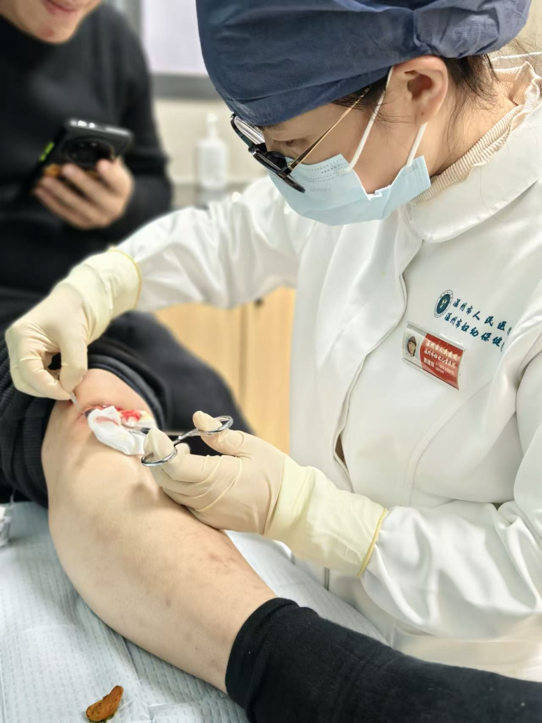 在造口伤口护理门诊,黄建双护士是慢性伤口的“终结者”。她熟谙各种新型敷料特性,能针对不同伤口精准选择,解决了许多连医生都棘手的难题。