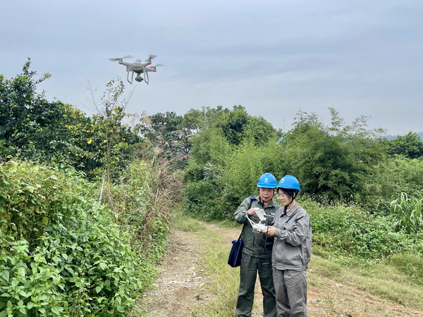 在现场,供电人员启用无人机对果园沿线配电线路进行精细化巡检,精准排查隐患。针对果园常用的抽水泵、脱粒机等农机具,向果农重点讲解设备接线规范、漏电保护装置使用方法及日常巡检要点,提醒果农定期检查电线、开关等常用设备,避免因线路老化、私拉乱接引发安全用电隐患。同时,通过发放安全用电手册、印有属地电话冰箱贴等方式,提升果农安全用电意识和技能。