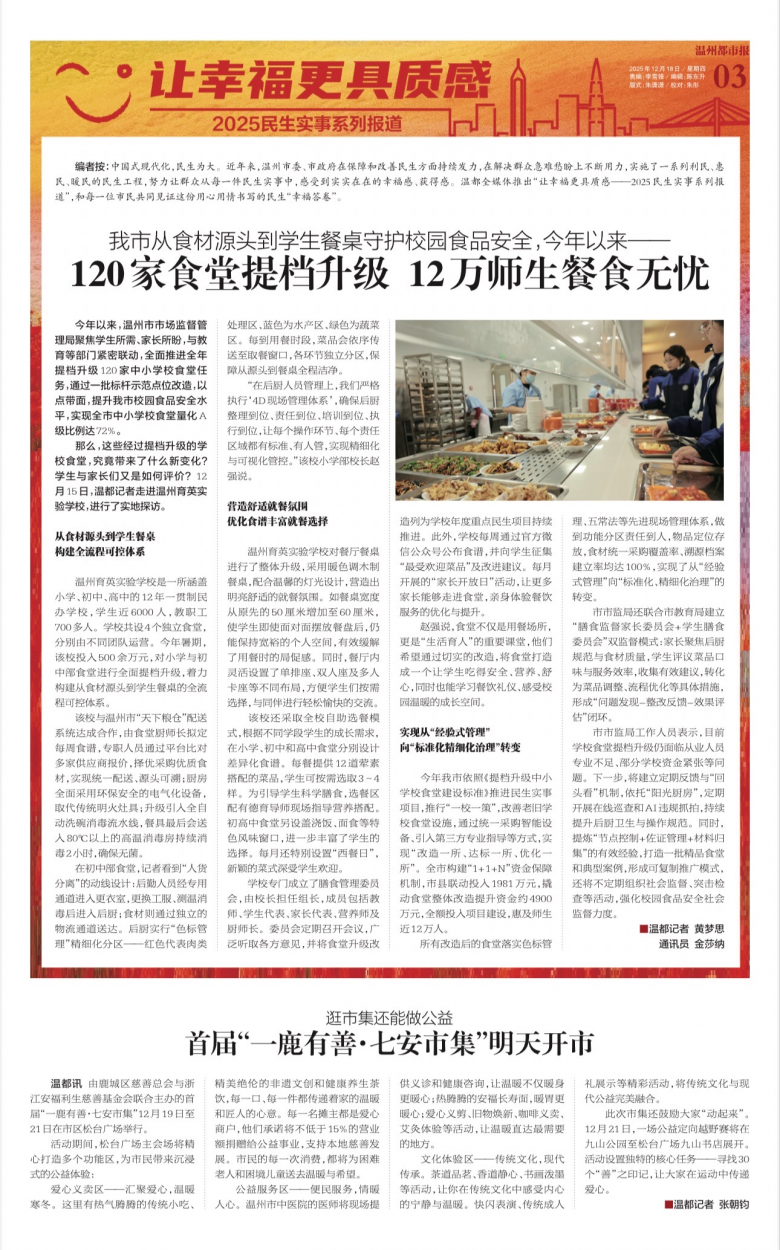 中国式现代化,民生为大。近年来,温州市委、市政府在保障和改善民生方面持续发力,在解决群众急难愁盼上不断用力,实施了一系列利民、惠民、暖民的民生工程,努力让群众从每一件民生实事中,感受到实实在在的幸福感、获得感。温都全媒体推出“让幸福更具质感——2025民生实事系列报道”,和每一位市民共同见证这份用心用情书写的民生“幸福答卷”。