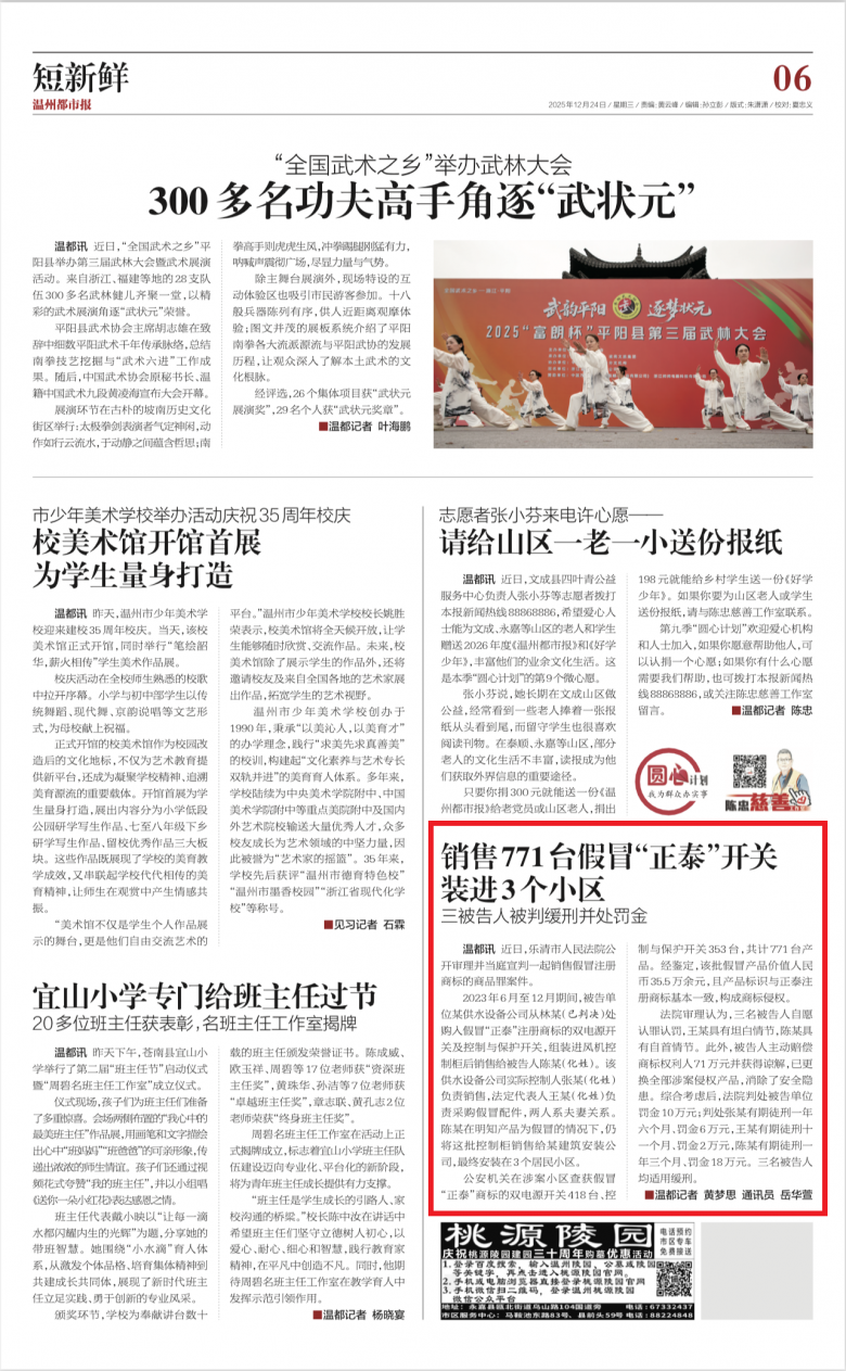 温都讯 近日,乐清市人民法院公开审理并当庭宣判一起销售假冒注册商标的商品罪案件。