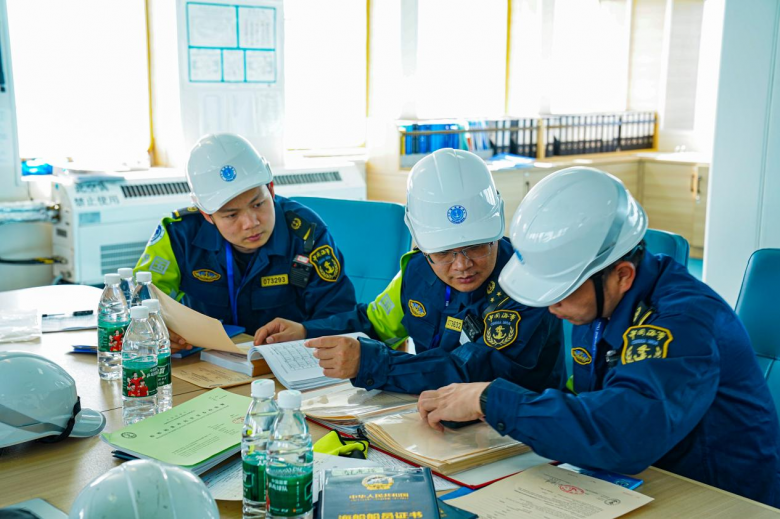 为保障这一重点工程顺利推进,温州海事局创新实施"监管+服务"双轮驱动模式,成立重大水工监管服务专班,构建全周期安全保障体系。通过建立"一对一"安全生产联络机制,累计识别并协调化解施工风险173项,实现风险隐患闭环管理。针对施工船舶安全管理痛点,创新推行"预检"制度,推动船方入场前完成自查整改114项,使入场船舶安检缺陷率降低近40%,保障40余艘施工船舶安全高效作业。
