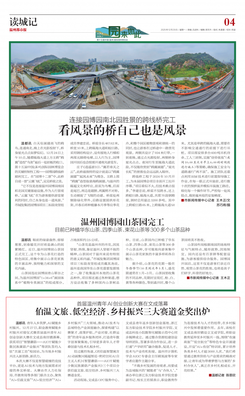“不做乡村发展的旁观者,而要成为县域振兴的‘赋能者’与‘合伙人’。”承办单位浙江东方职业技术学院党委副书记、校长王佑镁表示,职业教育作为连接技术与人才的纽带,在乡村振兴中发挥着重要作用。去年,该校在文成县南田镇设立文成学院,将职业教育延伸至乡村振兴一线,围绕“农康商旅”“低空航空”等特色专业开展建设,开设“AI+农创”特训班,累计培养各类乡村人才超3000人次。“我们希望通过教育供给与产业需求的精准对接,让青年成为带着梦想与方案的‘乡村合伙人’,真正在乡村扎根成长、开花结果。”