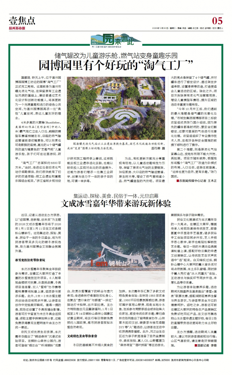 近日,记者从活动主办方获悉,以“迎园博、启新程、创未来”为主题的2026文成冰雪嘉年华将于2026年1月1日至1月11日在文成县铜铃山镇举行。这场集运动、探秘、美食、民俗于一体的冬日盛会,将为市民游客带来多元化的暖冬游玩选择,助力温州园博会文旅融合氛围升温。