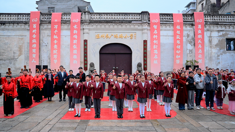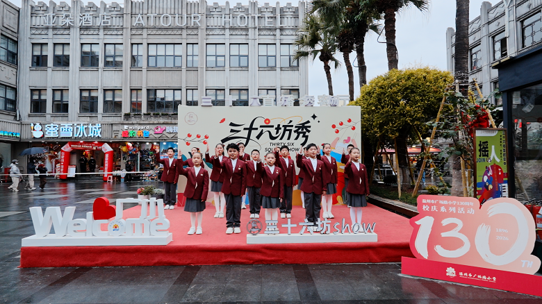 这次活动共有近200名学生参与演出。温州市广场路小学校长潘旸表示,以快闪形式迎接新年、串联校庆,既让孩子们在仪式感中开启新岁,更让百年校史与家国情怀深植心间,让130年的教育薪火在新年里焕发出更耀眼的光芒。