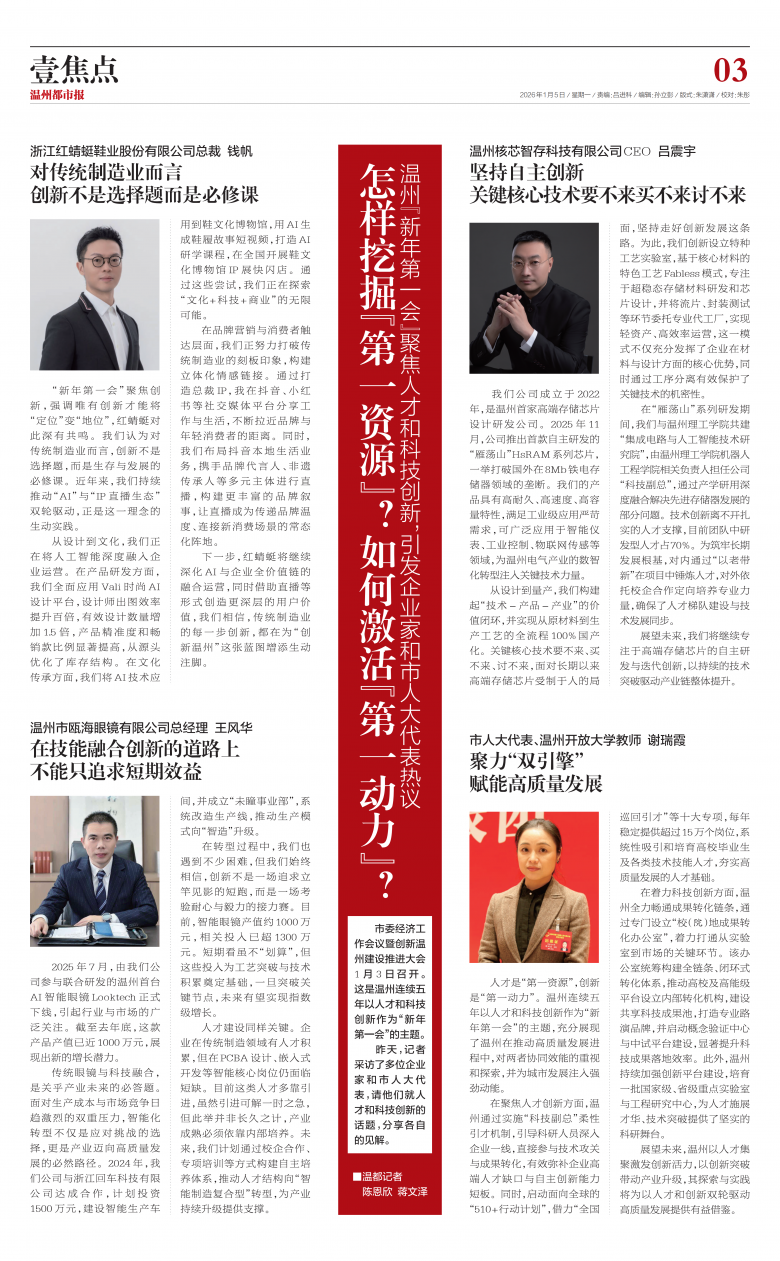 人才是“第一资源”,创新是“第一动力”。温州连续五年以人才和科技创新作为“新年第一会”的主题,充分展现了温州在推动高质量发展进程中,对两者协同效能的重视和探索,并为城市发展注入强劲动能。