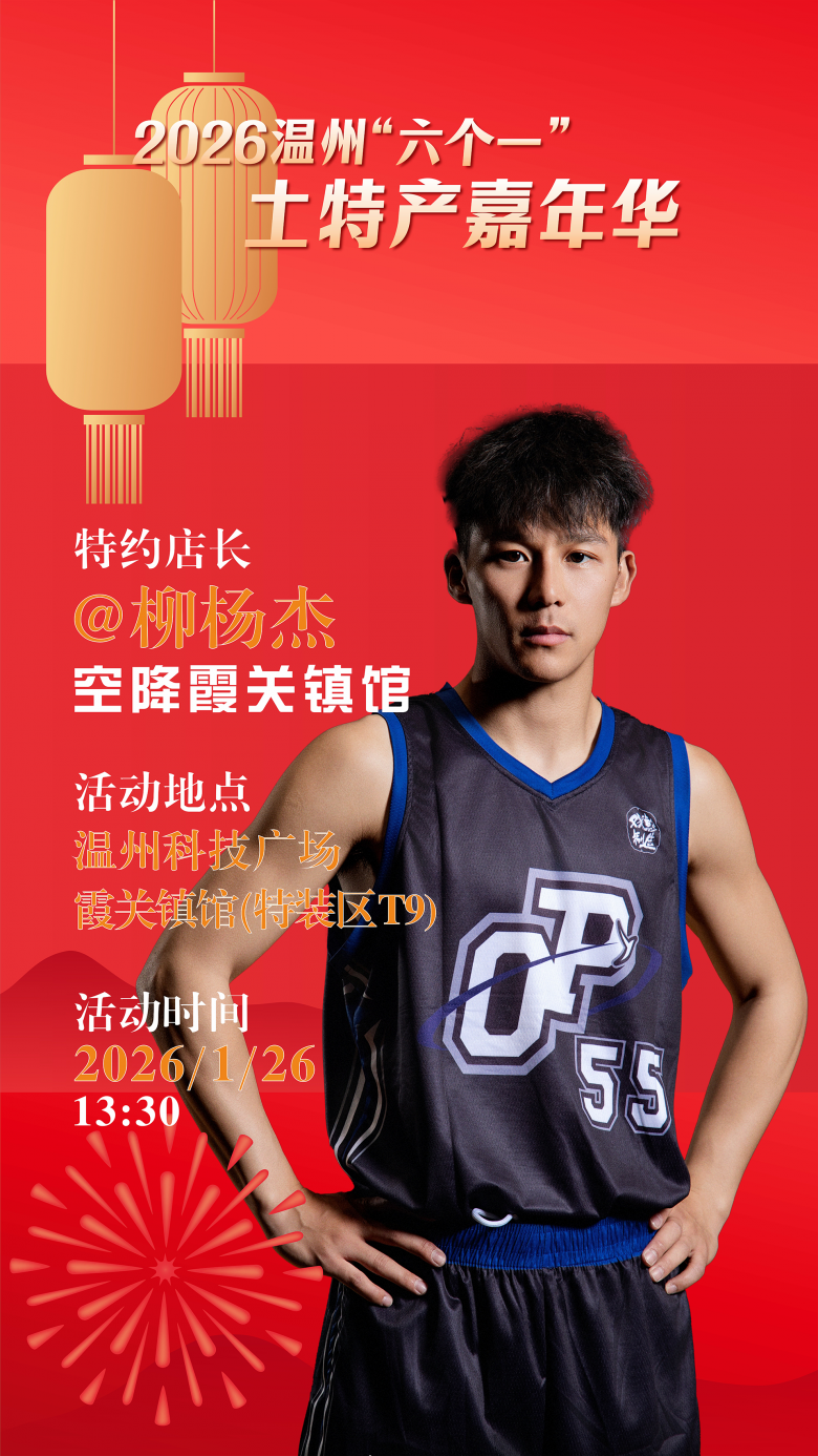 更令人期待的重磅消息来了!明天(1月26日)13时30分左右,浙BA苍南队明星球员、路人王24冠王“柳神”柳杨杰,将空降霞关镇馆担任特约店长!这位身披55号球衣的苍南骄傲,不仅会在场上用精准传球点燃气氛,还将亲手为大家煎海苔饼、煮鱼丸、推荐海参,解锁赛场外的烟火气技能。