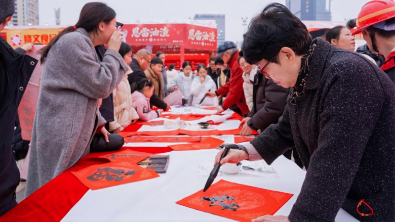 “我们经常参加这样的活动,可以让大家感受到节日的氛围。”谢慈恩说。人们手里的红福字、红对联映照着张张笑脸,现场沉浸在一片温暖的红色光晕中。这里传递的不仅是红纸黑字,更是对新一年最美好、最诚挚的祝愿。