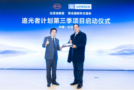 1月26日,比亚迪与联合国教科文组织在天津迪空间正式举行“追光者计划”第三季项目启动仪式,比亚迪携手联合国教科文组织共建新生态。双方将依托比亚迪在新能源技术领域的核心优势,结合联合国教科文组织在可持续发展领域的深厚积淀,共同构建可持续发展公益合作新生态。