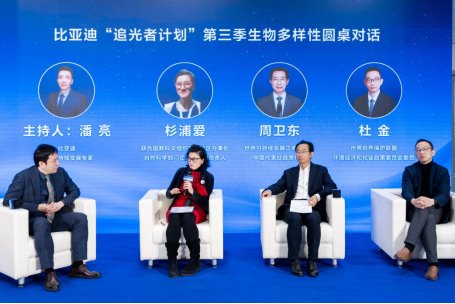 紧接着,现场嘉宾围绕“生物多样性”开展圆桌对话,杉浦爱提出,生态系统修复需要科技、社区参与及本地治理的协同推进。世界可持续发展工商理事会中国代表处首席代表周卫东表示,此次合作模式推动企业从表态转向解题,为中国企业参与全球生物多样性治理探索新路径。世界自然保护联盟环境经济和社会政策委员会委员杜金认为,比亚迪“追光者计划”第三季体现企业从风险评估迈向实质行动,这类前置性战略投入,有助于企业占据主动位置、降低系统性风险。
