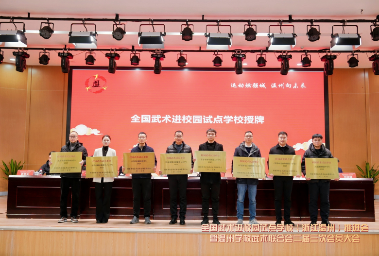 温都讯 2月1日上午,全国武术进校园试点学校(浙江温州)推进会在温州体育运动学校举行。会上,国家体育总局武术运动管理中心委托温州市体育局为50所中小学正式授牌。