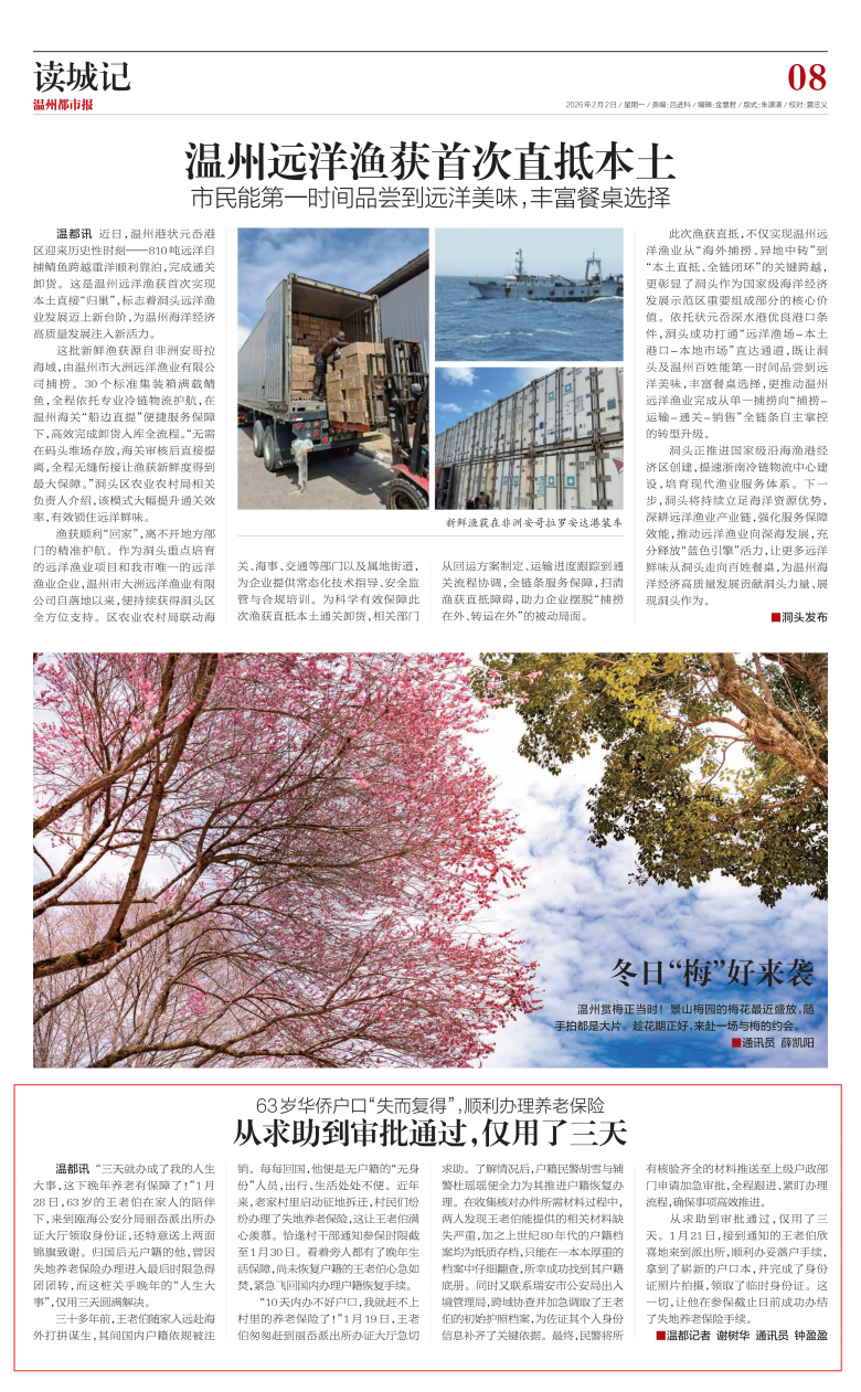 三十多年前,王老伯随家人远赴海外打拼谋生,其间国内户籍依规被注销。每每回国,他便是无户籍的“无身份”人员,出行、生活处处不便。近年来,老家村里启动征地拆迁,村民们纷纷办理了失地养老保险,这让王老伯满心羡慕。恰逢村干部通知参保时限截至1月30日。看着旁人都有了晚年生活保障,尚未恢复户籍的王老伯心急如焚,紧急飞回国内办理户籍恢复手续。