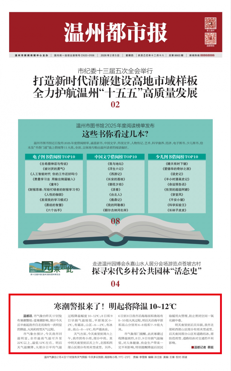 ▲《温州都市报》2026年2月5日01版