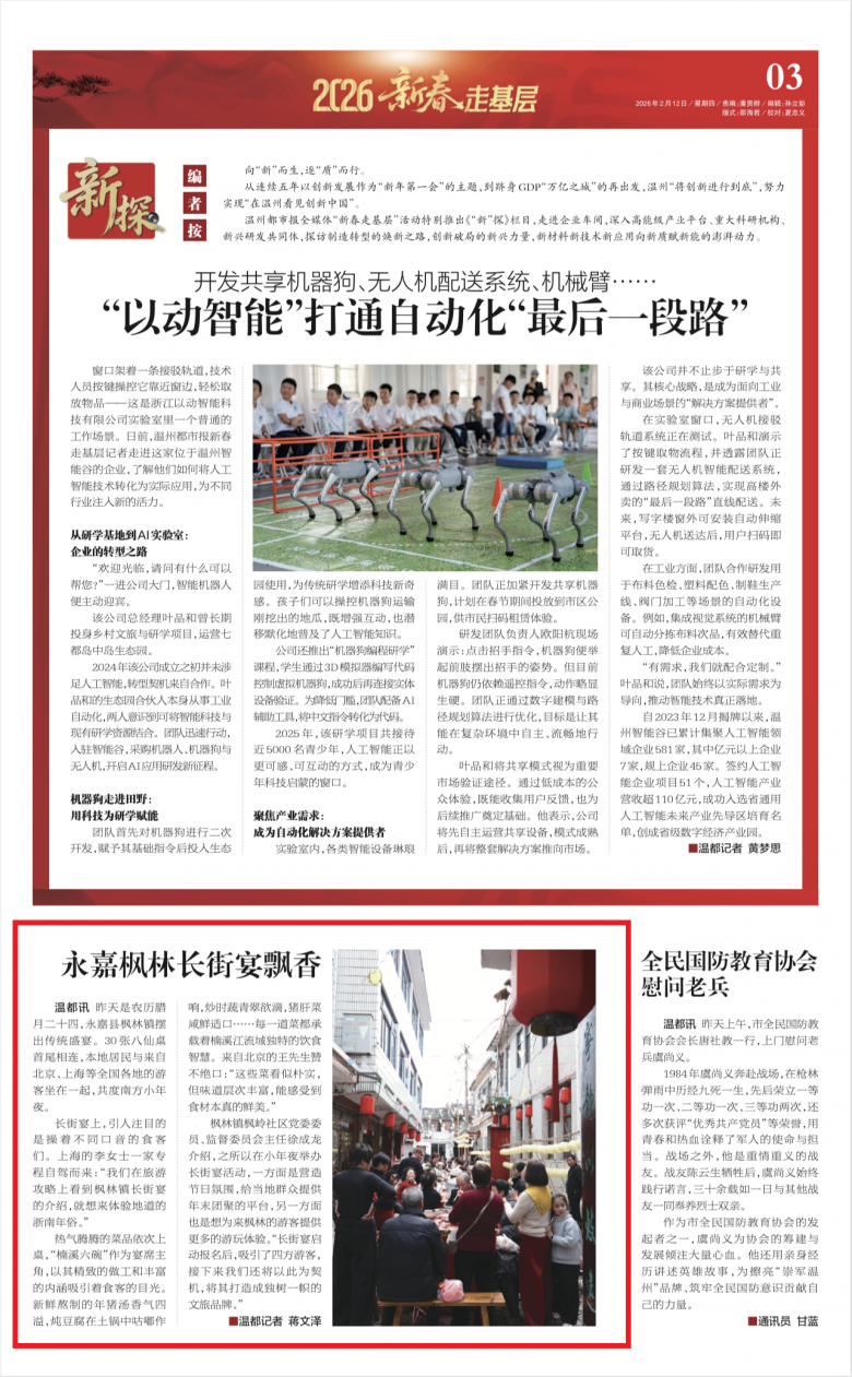 温都讯 2月11日是农历腊月二十四,永嘉县枫林镇摆出传统盛宴。30张八仙桌首尾相连,本地居民与来自北京、上海等全国各地的游客坐在一起,共度南方小年夜。
