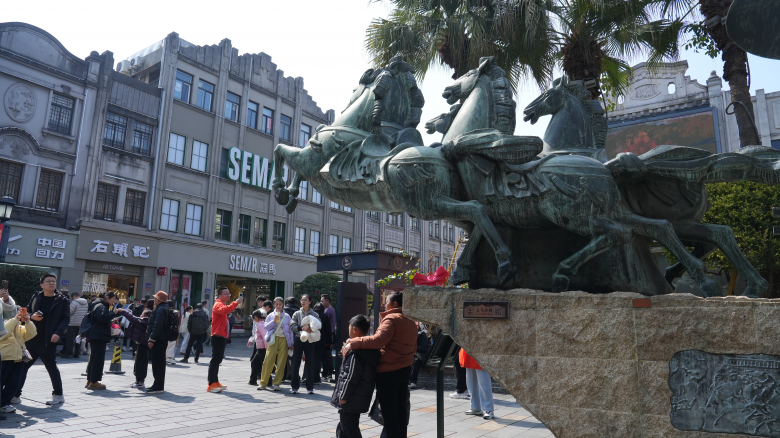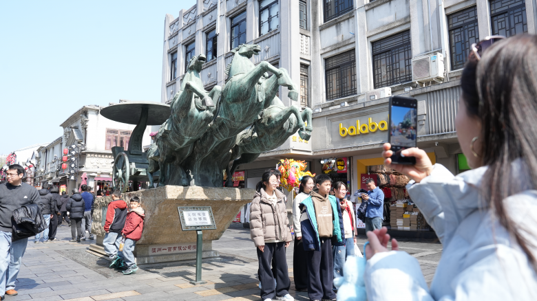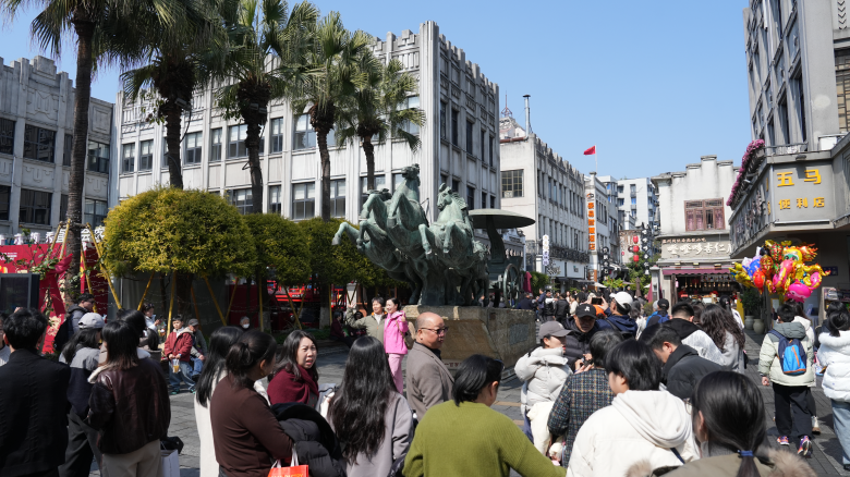 大家或全家合影,或驻足打卡,以最热闹的方式迎接马年,寄托“马到成功、万事顺遂”的新年期盼。街区张灯结彩,喜庆氛围浓厚,尽显新春烟火气与城市活力。