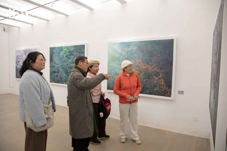 本次展览以秋日柿红为创作主题,作品横跨浙闽两省,历时多年拍摄完成。展览中最引人注目的是作品的超大尺寸呈现,其中最大一幅竖幅作品高达近3米,给人以强烈的视觉冲击力和身临其境的观展体验。