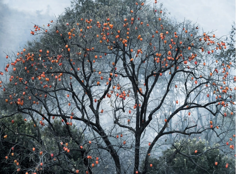 吴培军表示,柿子和柿树蕴含三种人文精神:慷慨、喜悦与潇洒。“深秋时节,红柿挂满枝头,是自然的馈赠;捧起柿果,是一种欢喜的情绪;而从镜头中看柿树的枝干,则是一幅富有韵律的丹青画卷。”
