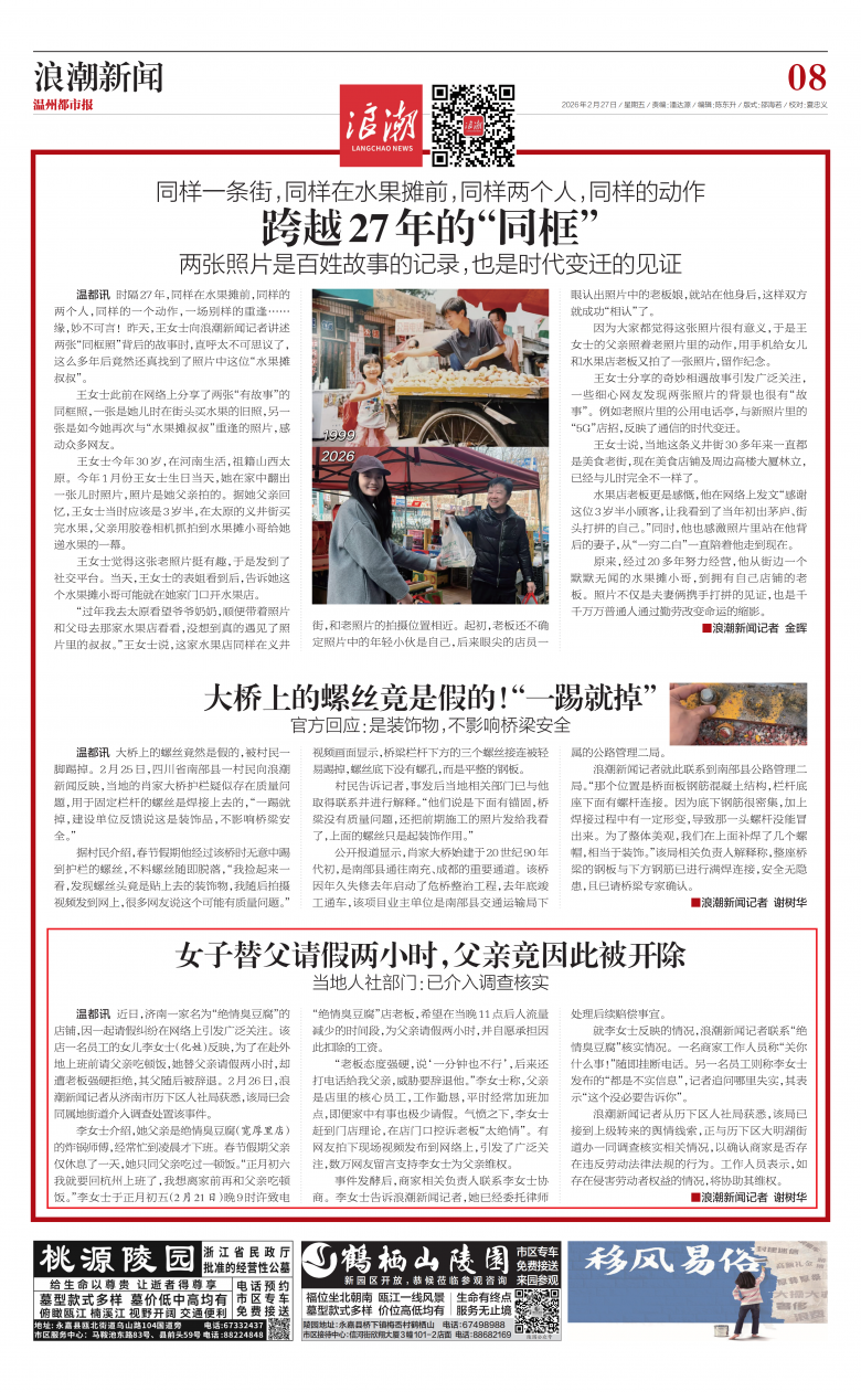 ▲《温州都市报》2026年2月27日08版